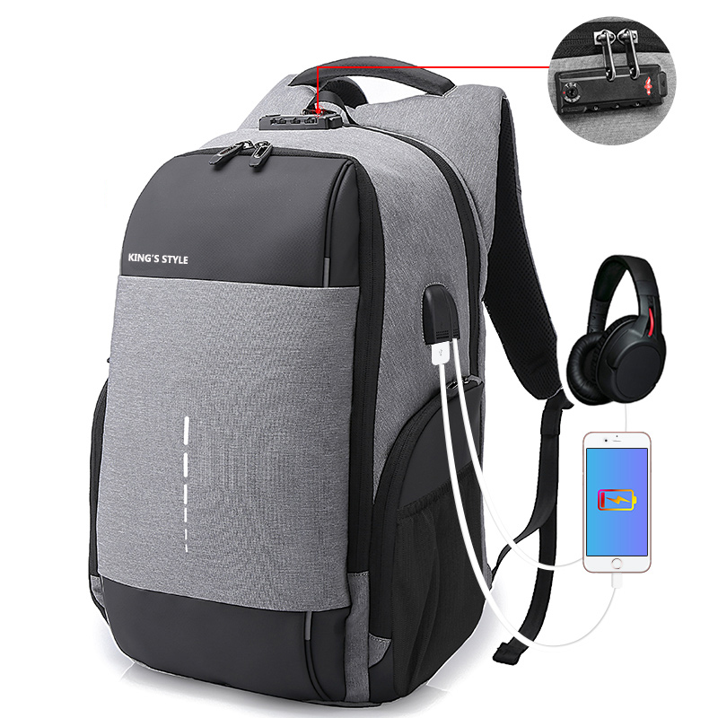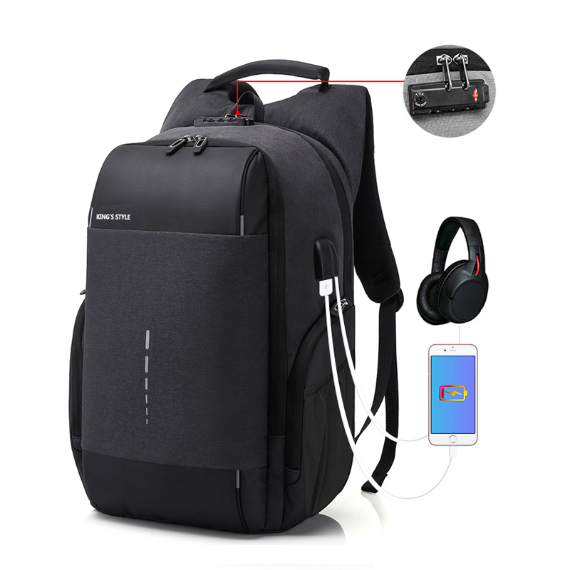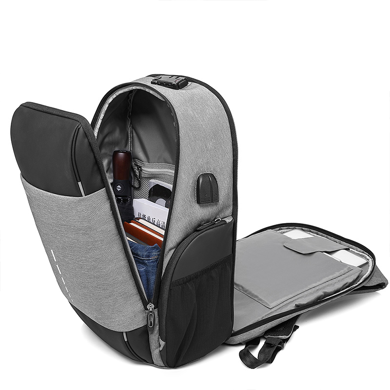 Outdoor fashion mens business laptop bag school backpack with USB charge port and smart anti-sheft pocket