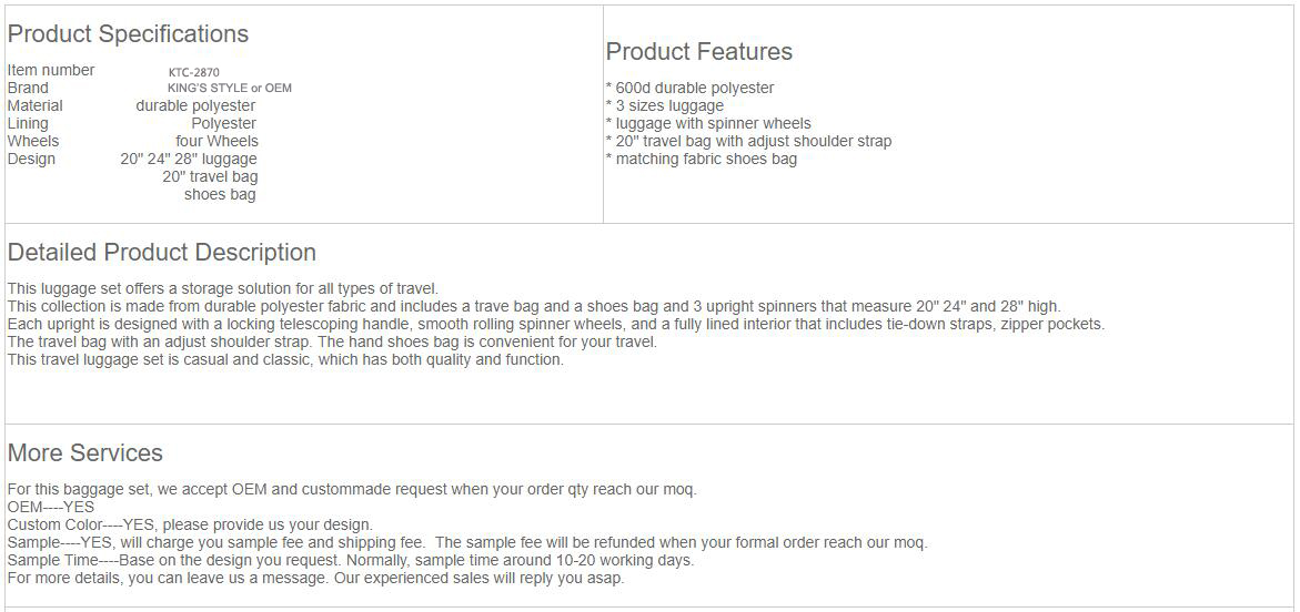 For this baggage set, we accept OEM and custommade request when your order qty reach our moq.